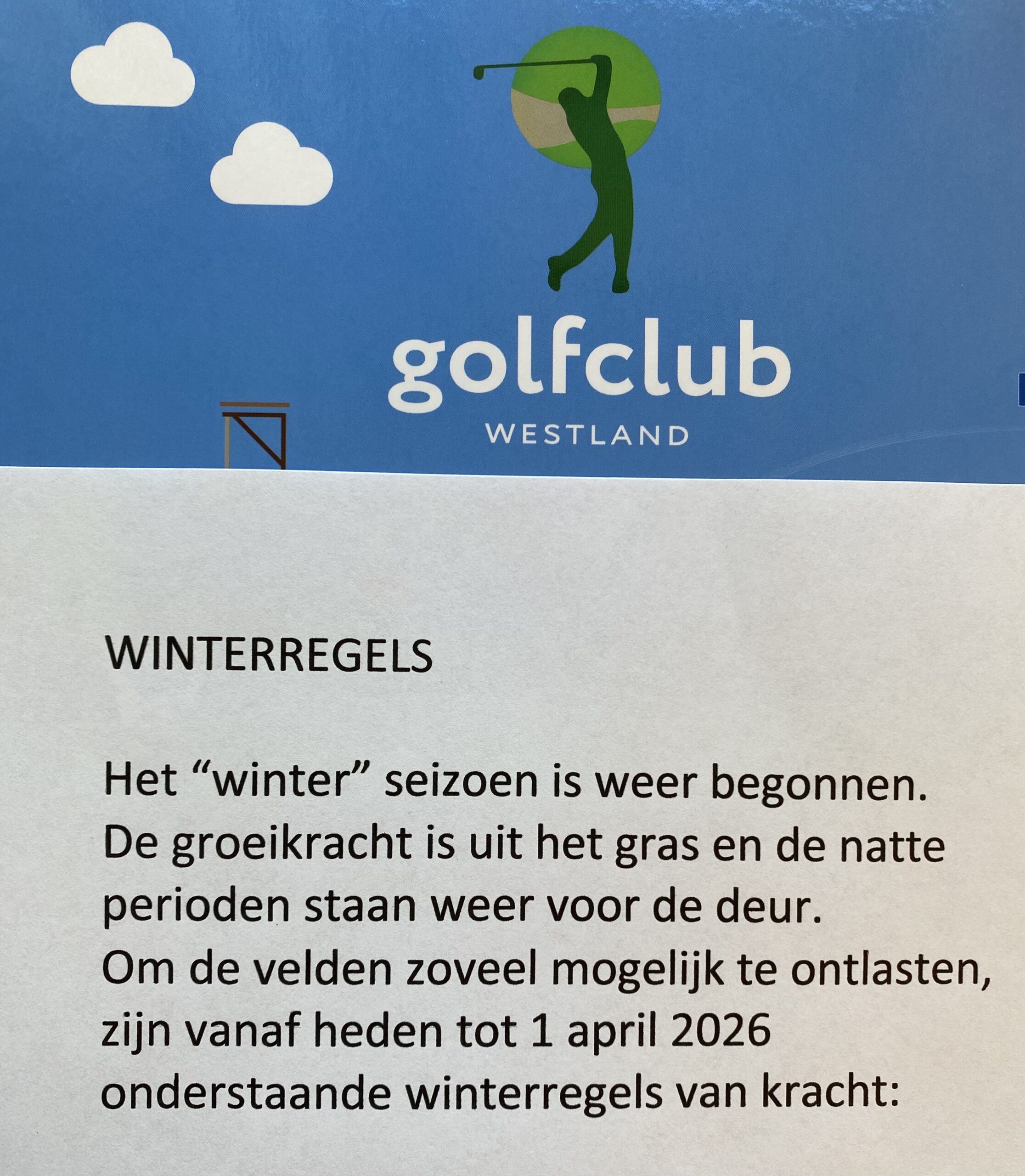 Om de velden zoveel mogelijk te ontlasten, zijn vanaf heden tot 1 april 2026 onderstaande winterregels van kracht:
